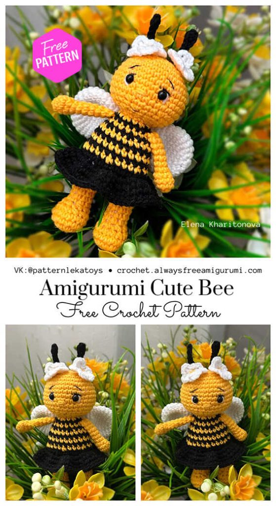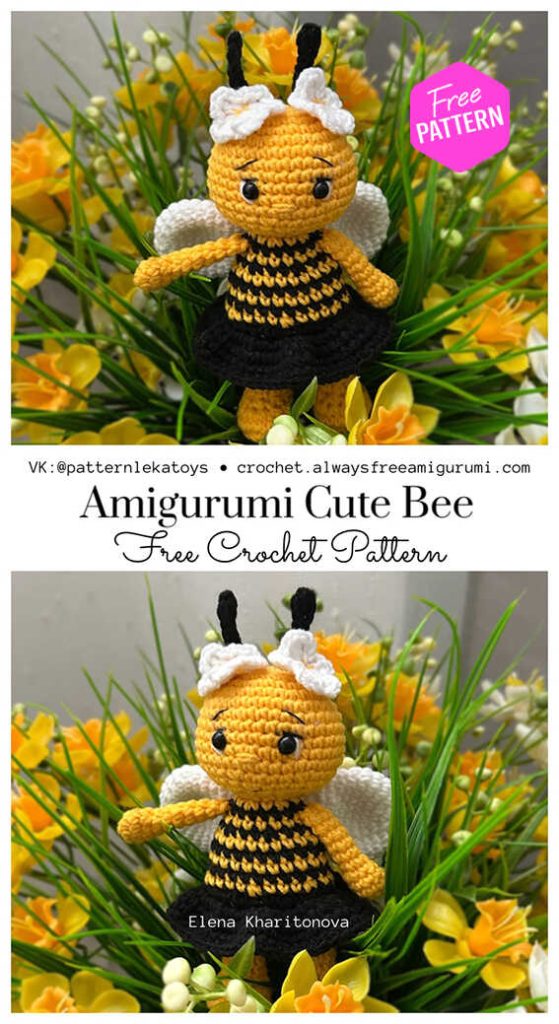 Original amigurumi bee pattern by Elena Kharitonova. Published here in translated form for crochet enthusiasts. Please acknowledge the designer if you use or share the pattern.