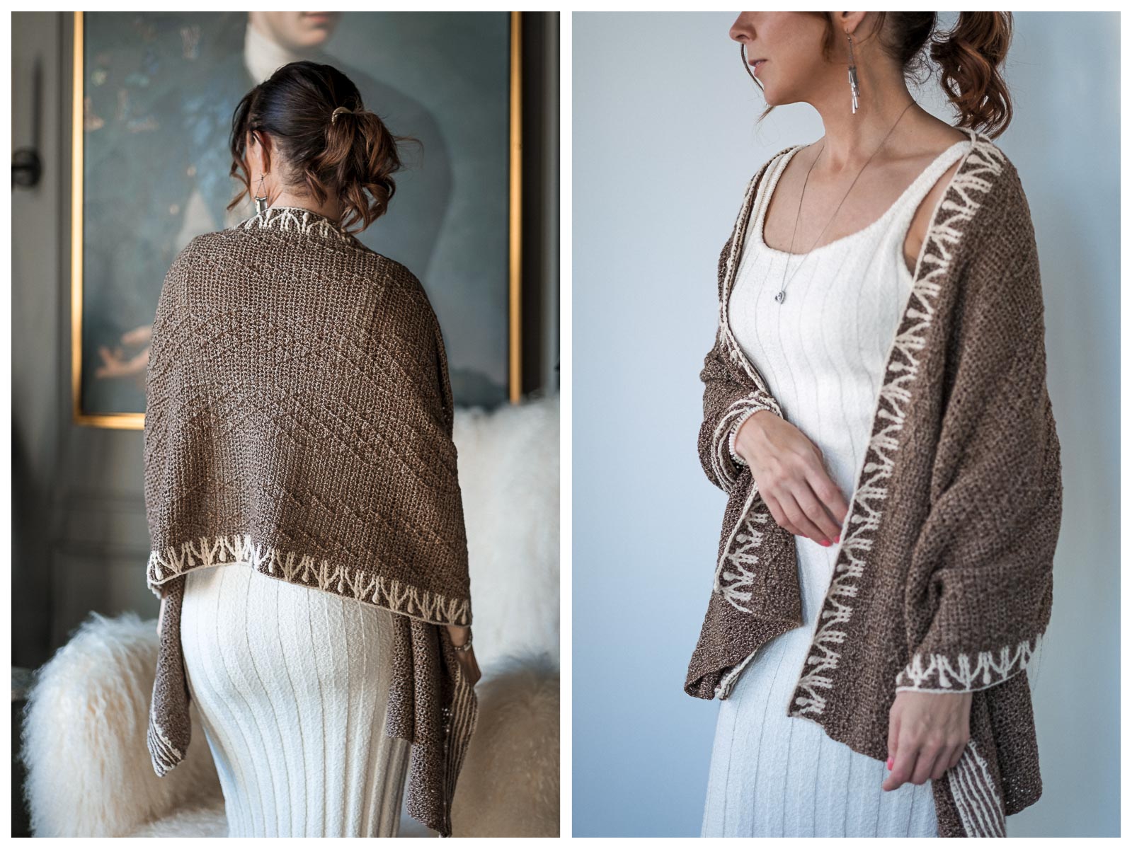 Hello, sweet soul! Today, I have a lovely, cabled crochet pattern to share with you. This gorgeous design—shown here in both a scarf and shawl version—will wrap you in an elegant embrace. Keep reading to learn all about this week’s pattern!