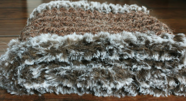 Next, utilizing the faux fur yarn, you will insert your hook into ROW 1 and Row 10 respectively and HDC solely once for one round. At the end of both rounds, SL ST to complete final work.