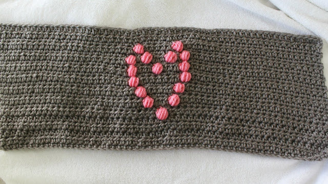 R8: HDC into the first 27 STS [change colors to Pink to create a PUFF STITCH] then HDC the remaining the 3 STS, and then [change colors to Pink to create a PUFF STITCH], then HDC the remaining STS, at the end of the row, turn work utilizing turning chain to continue.