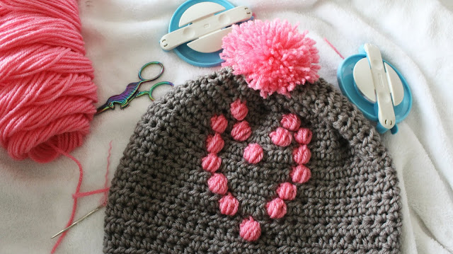 Also, I created two pom poms to place at the top of the hat for a little more flair!
