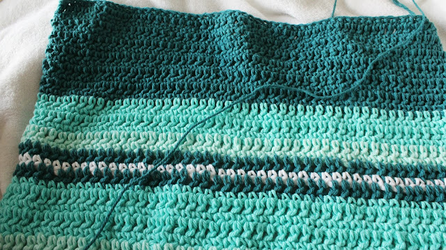 2 Skeins of Teal/1 Skein of Light Teal/1 Skein of White from Sugar N’Cream/Medium 4/ Cotton