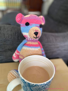 I used the Crew colourway, and Anne’s adorable Cross Your Heart Teddy pattern. Allie has already claimed it, and loves cuddling Teddy and tucking him into bed .