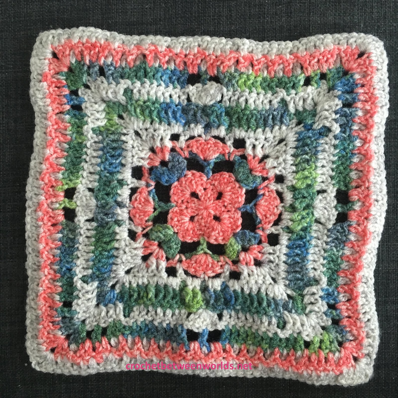 Again, this square was a lot of fun to crochet. Working longer stitches into the row below, playing with back post stitches, and having the variety of a square design (most of these squares start as circles)…