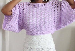 Lace inspired off the shoulder crochet batwing top.