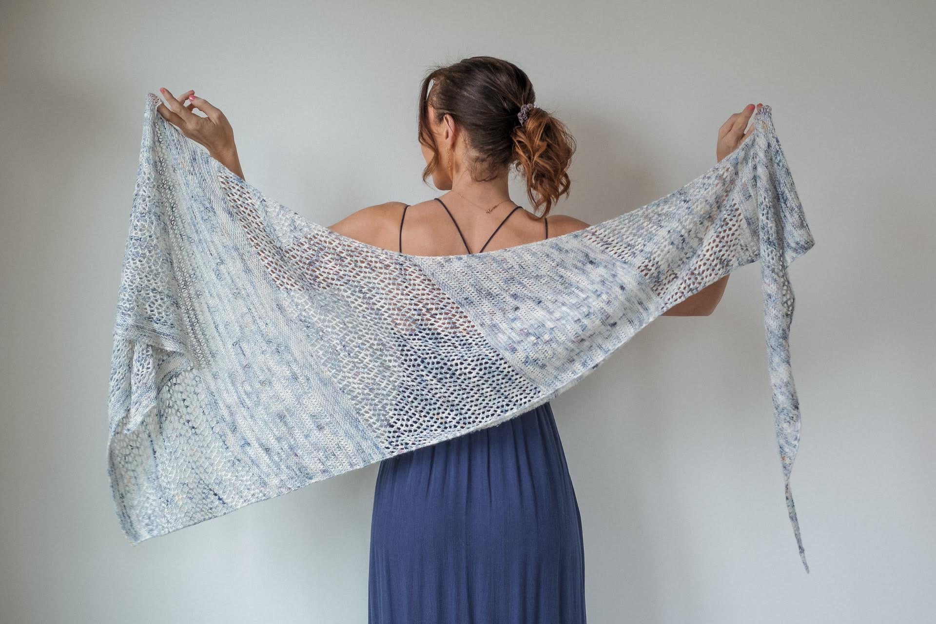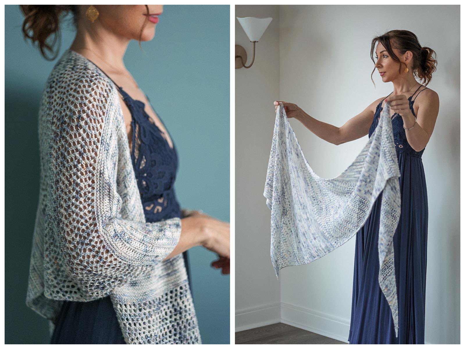 Hello, my lovely friend! Today, I have an elegant, flowing knitted shawl pattern for you. This stunning shawl features an easy openwork design, which is so very pretty! I hope you’ll keep reading to learn all about this week’s gorgeous shawl!